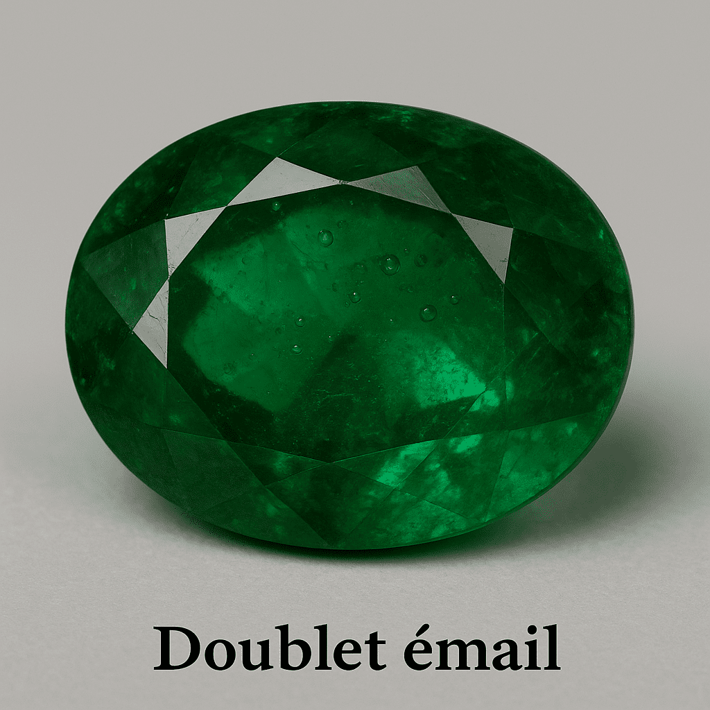 Le doublet à l’émail, utilisé dès le début du XXᵉ siècle, est une forme sophistiquée d’imitation. Il se compose de deux parties distinctes :